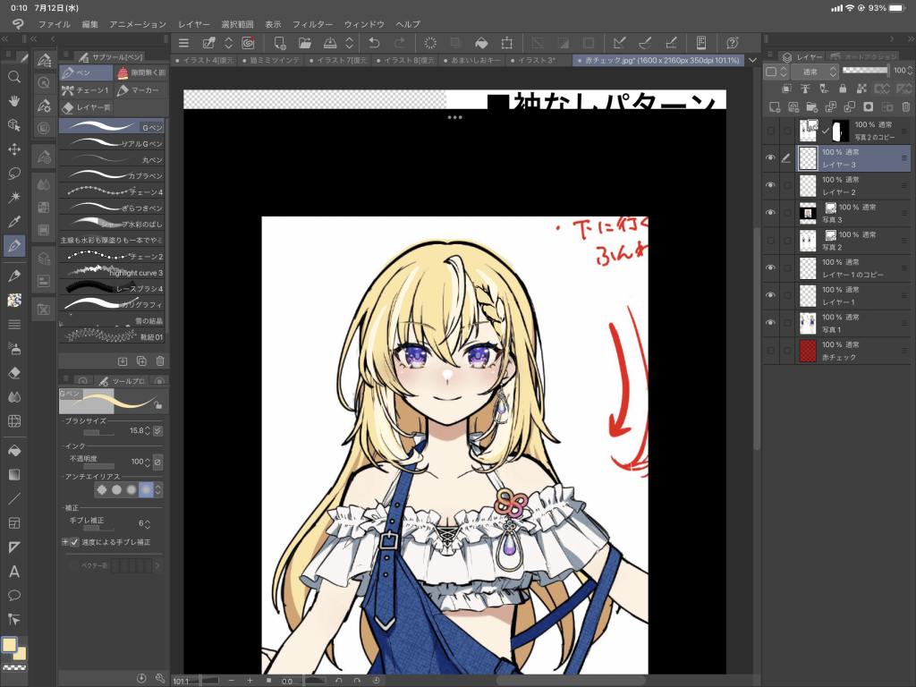 最初の返却イラストを確認した後、しぁは詳細デザインの確認段階で追加のリクエストを行いました。細かい部分の修正や追加の希望を伝えるためのイラストを作成し、制作会社に送りました。
