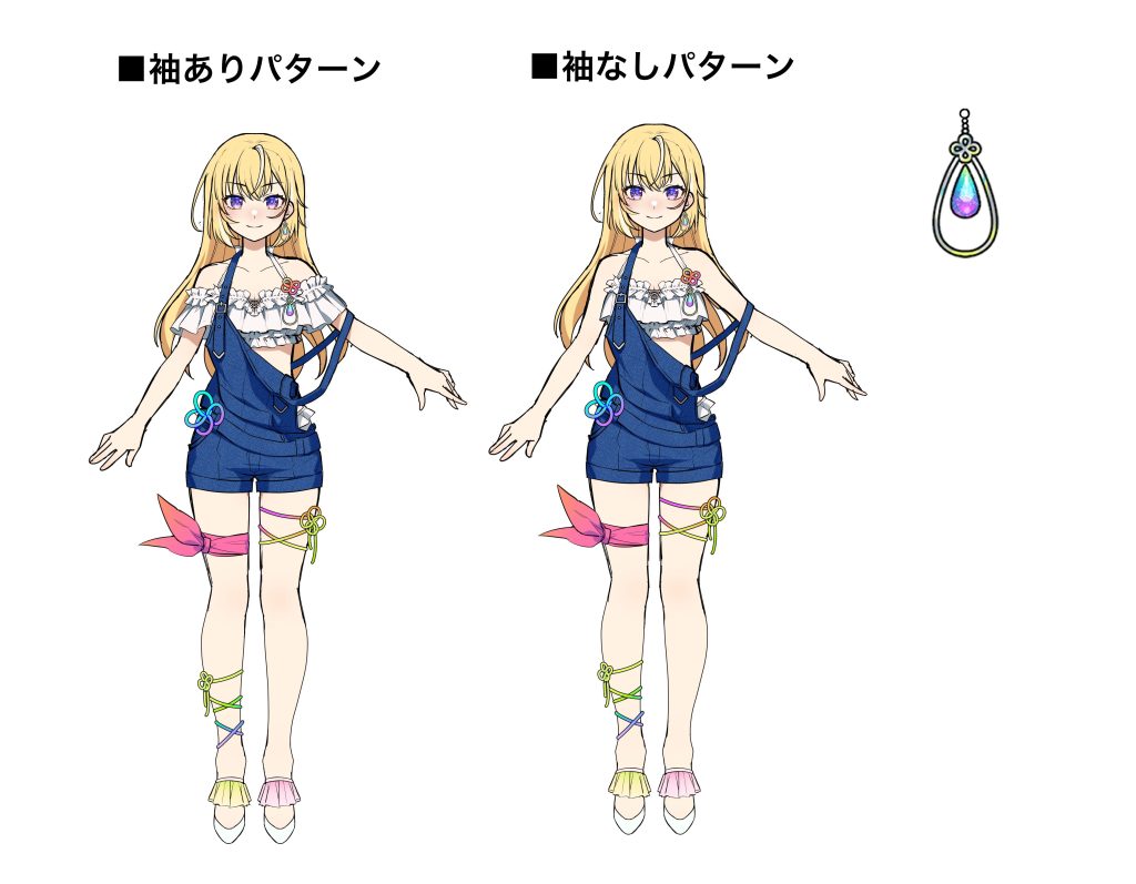 - デザインの希望:金髪を基調とした配色、長髪型、可愛らしい服装